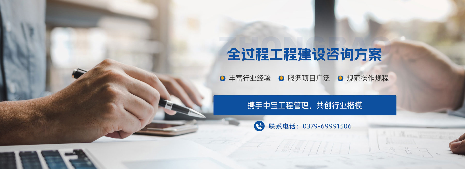 河南中寶工程管理服務有限公司是一個由十多位在工程咨詢服務及CPA行業有著多年工作經歷、豐富行業經驗、高素質人士于2009年開始籌劃運作凝聚而成的精英團隊,主要從事全過程工程咨詢、審計、工程造價、招標代理、資產評估、績效評價、可行性研究報告編制與評審、稅務咨詢與籌劃、政府和社會資本合作(PPP)項目咨詢與評審、政府專項債券全過程包裝咨詢、項目及建設項目全過程管理咨詢服務、工程設計、破產清算咨詢服務、課題及職稱服務等業務。2019年6月注冊,注冊資本為1018萬元,是集會計、審計、工程、評估、設計、招標、PPP項目、績效評價、政府專項債券、課題職稱為一體的綜合性鑒證機構及綜合性研發中心。公司注冊地址:河南省洛陽市洛龍區開元大道與關圣街交叉口怡和嘉園小區3號樓12樓1201室。是河南省全過程工程聯盟(河南省科技廳、河南省住建廳批準的全過程工程咨詢機構)常務理事單位,是洛陽技術研究院發起單位。協助洛陽技術研究院打造全過程聯盟洛陽技術研究院工程咨詢行業“六大平臺”:業務技術交流平臺、業務信息共享平臺、業務互助合作平臺、服務能力提升平臺、執業職稱促進平臺、科學技術研究平臺。 公司現有員工56人,全部為大學??埔陨蠈W歷,其中,本科及以上學歷占75%;中級、高級職稱人員占50%;擁有注冊執業資格證書人員占45%。公司有穩定的服務團隊和專家指導團隊,有河南省財政 廳及洛陽市財政評審專家5人,河南省財政廳績效評價入庫專家2人,河南省財政廳土地整治(理)評審專家1人,河南省財政廳高級會計師評審專家庫成員1人,河南省綜合評標專家庫專家1人,河南省審計廳外聘審計專家庫專家1人,河南省財政廳政府和社會資本合作(PPP)專家1人。 公司始終注重加強內部治理。按照國家法律法規和行業規范,先后制訂了《業務質量控制及監督檢查機制》、《業務質量責任追究與賠償機制》、《采購代理業務內部監督管理辦法》、《項目管理責任制》、《重大風險事項報告制度》、《緊急預案和糾偏方案》、《保密工作條例》、《檔案管理制度》、《員工行為規范》等近20項規章制度,以樹立企業理念,規范操作規程,嚴格質量把控,強化責任擔當。 公司實行信息化管理。辦公設備自動化程度高、設備齊全;建立了信息管理系統、資料管理系統、質量管理系統,能夠全方面、快捷、準確的完成各種項目管理及相關咨詢業務,促使各工作流程、組織措施、技術措施、管理措施等相互促進,協調發展,極大地提高了工作效率,為業主項目的順利進展提供了可靠保障。